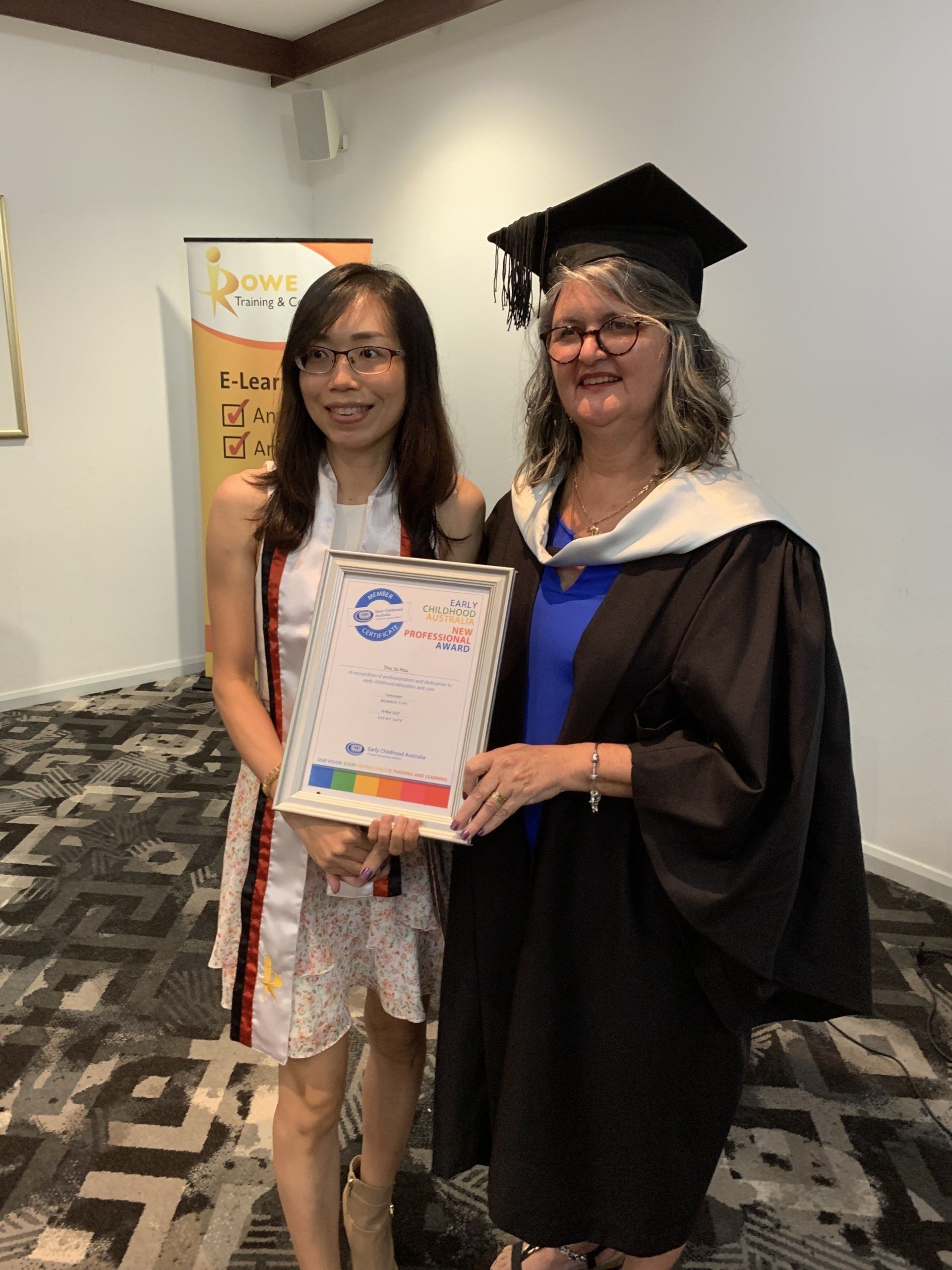 Linda Hsu for New Professional the Early Childhood Australia Award in completing her CHC50113 Diploma of Early Childhood Education and Care