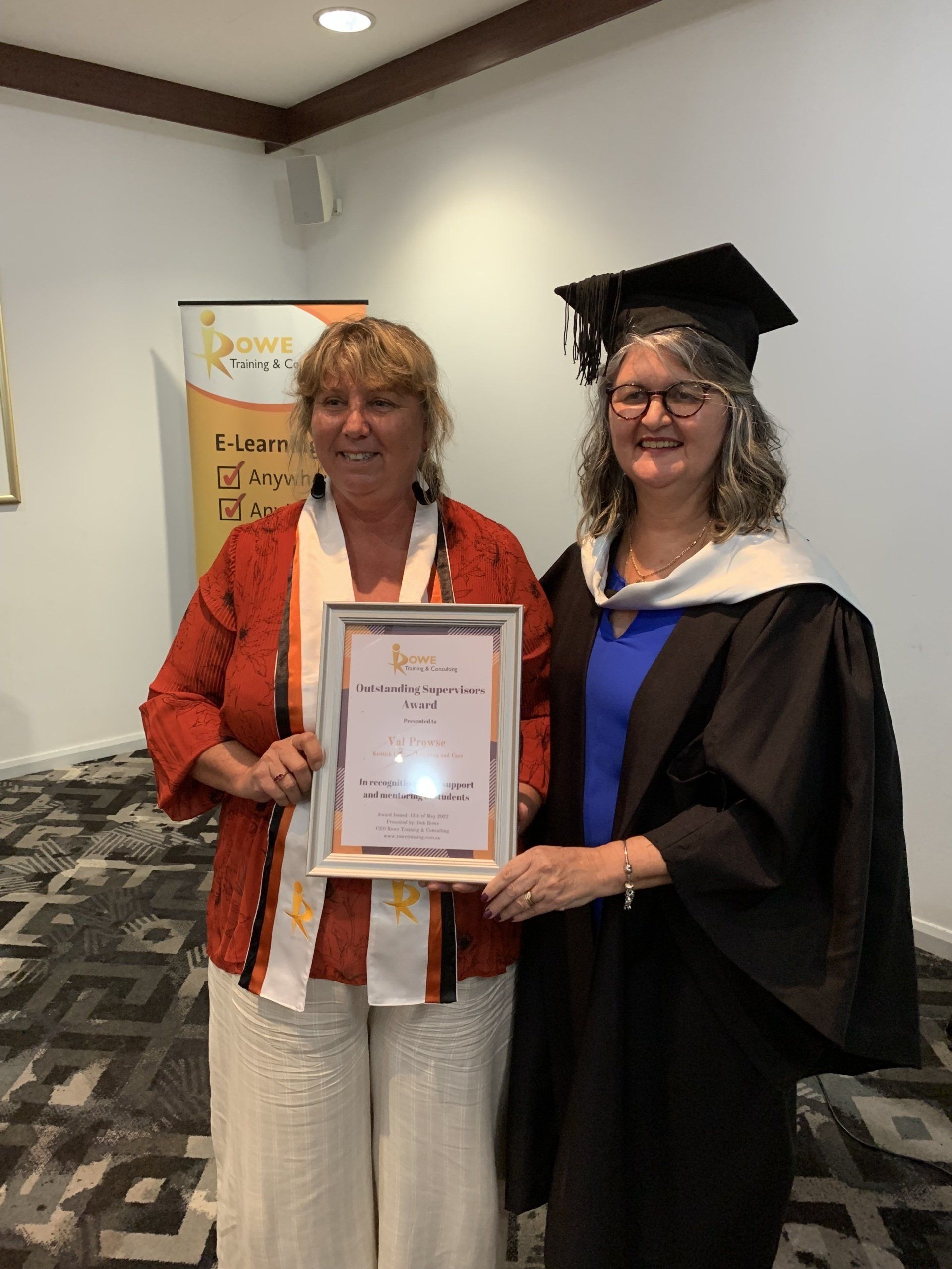 Val Prowse in recognition of the Support and Mentoring of students in CHC40313 Certificate IV in Child Youth and Family Intervention.